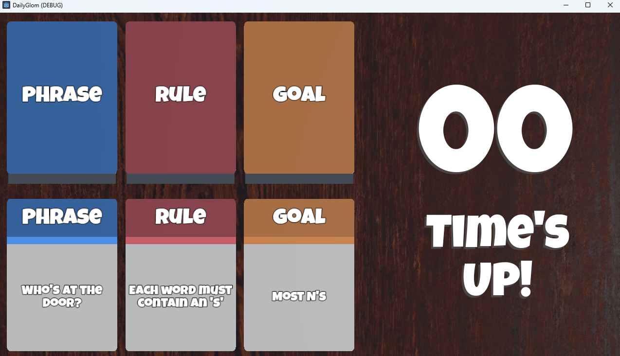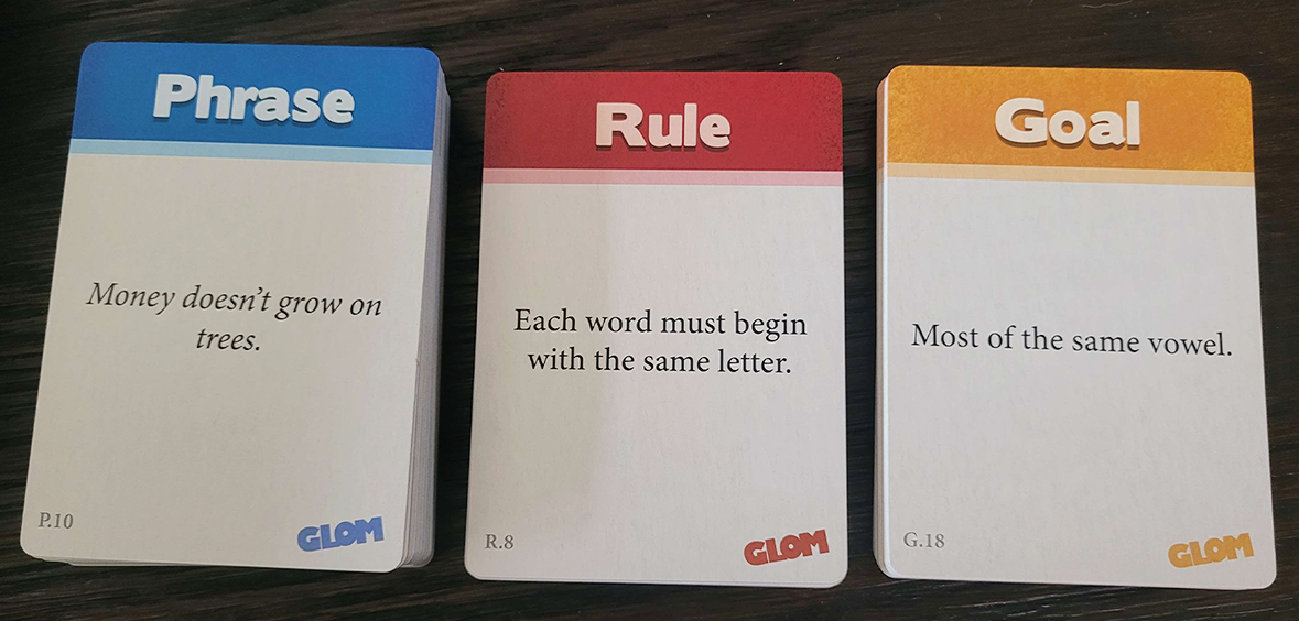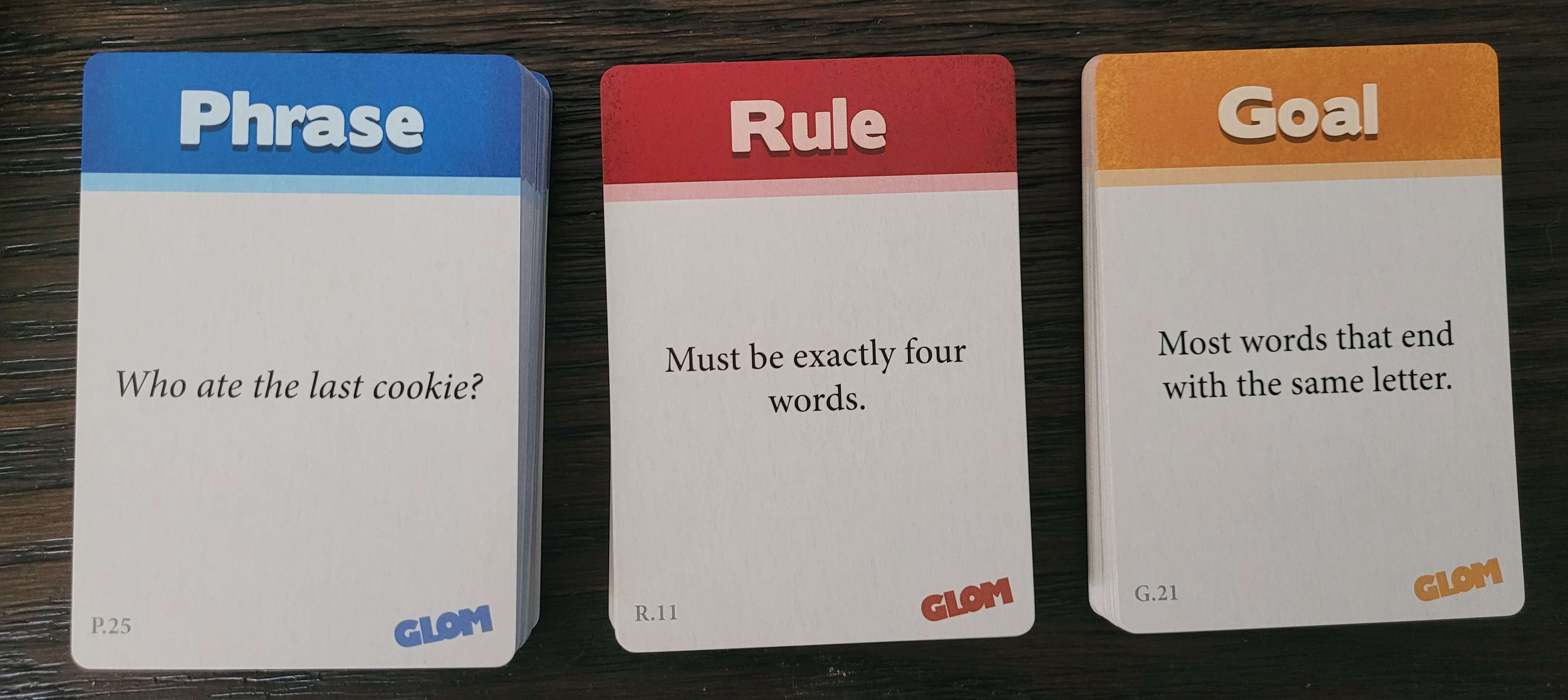 Here are today's cards. Spoiler tags up for anyone who wants to play "Reverse Glom" (guessing the prompt from the answers): (edited)