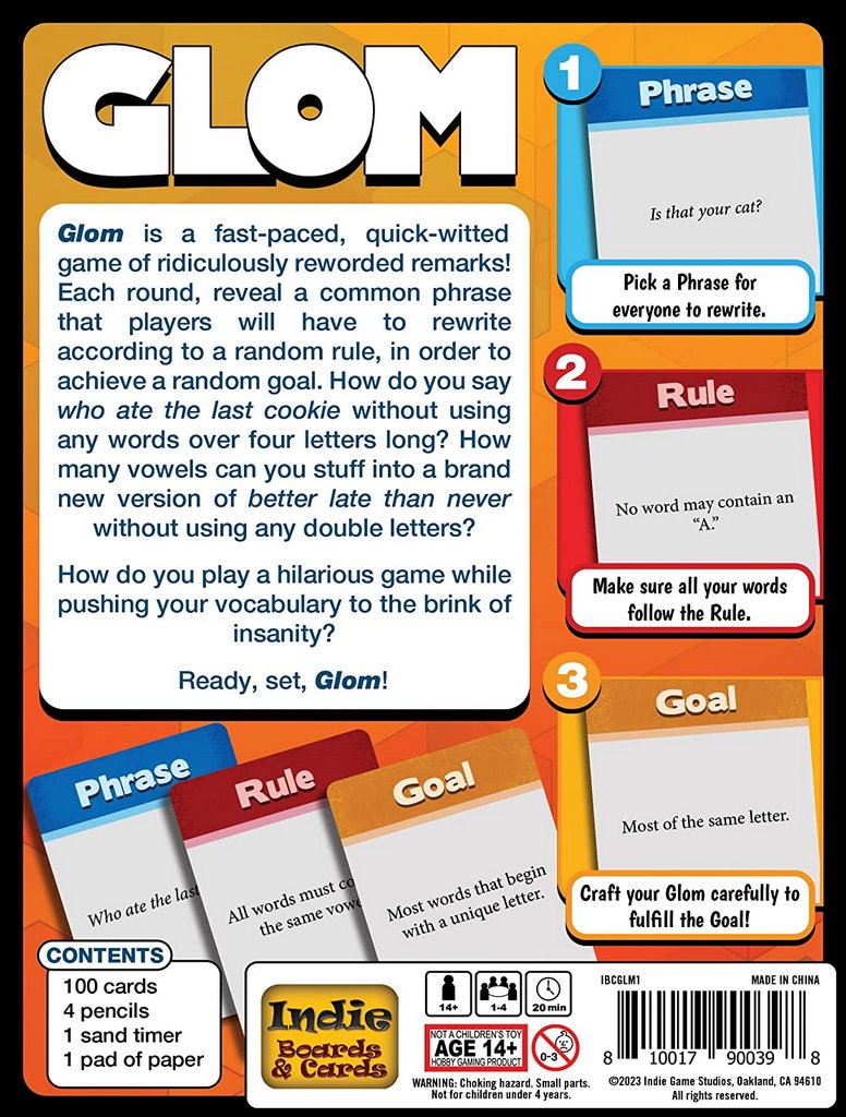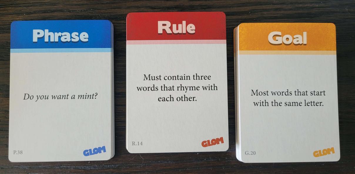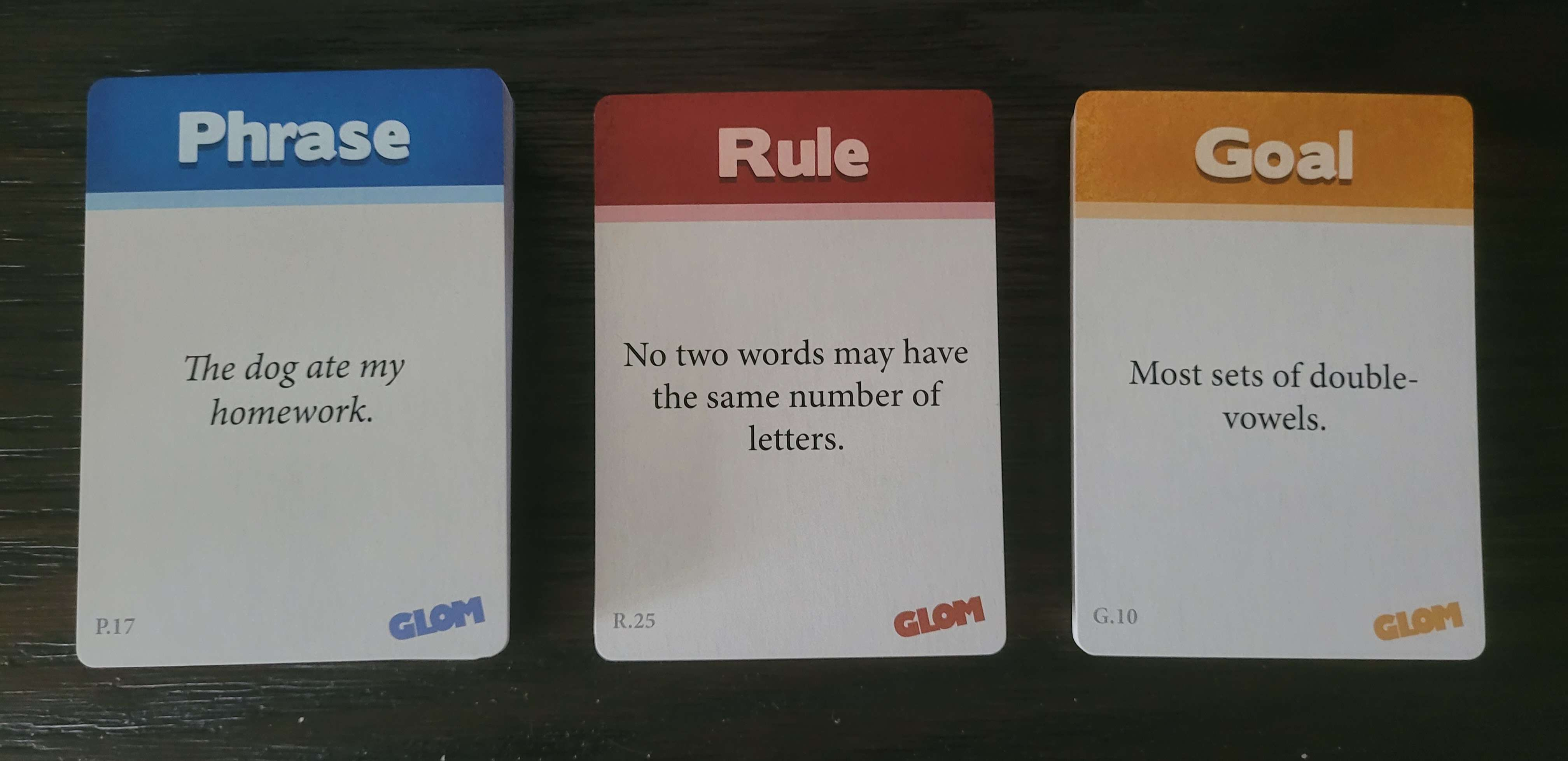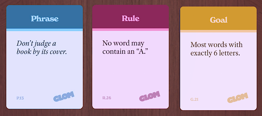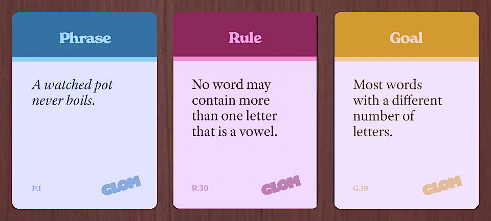Here are today's cards. Spoiler tags up for anyone who wants to play "Reverse Glom" (guessing the prompt from the answers):